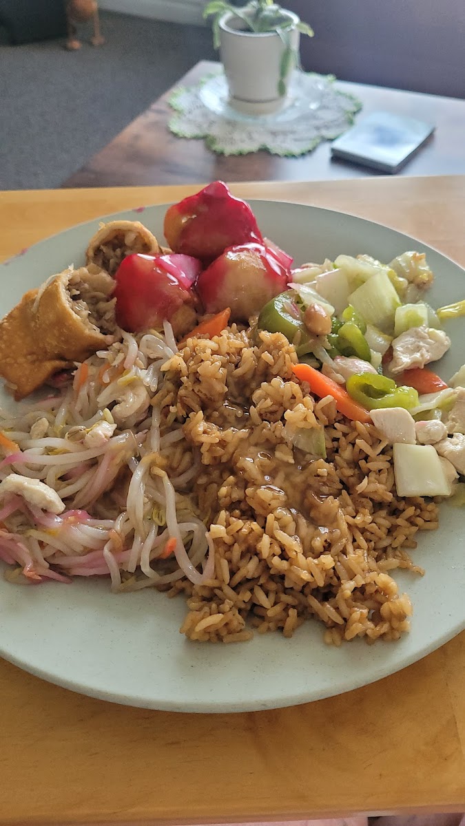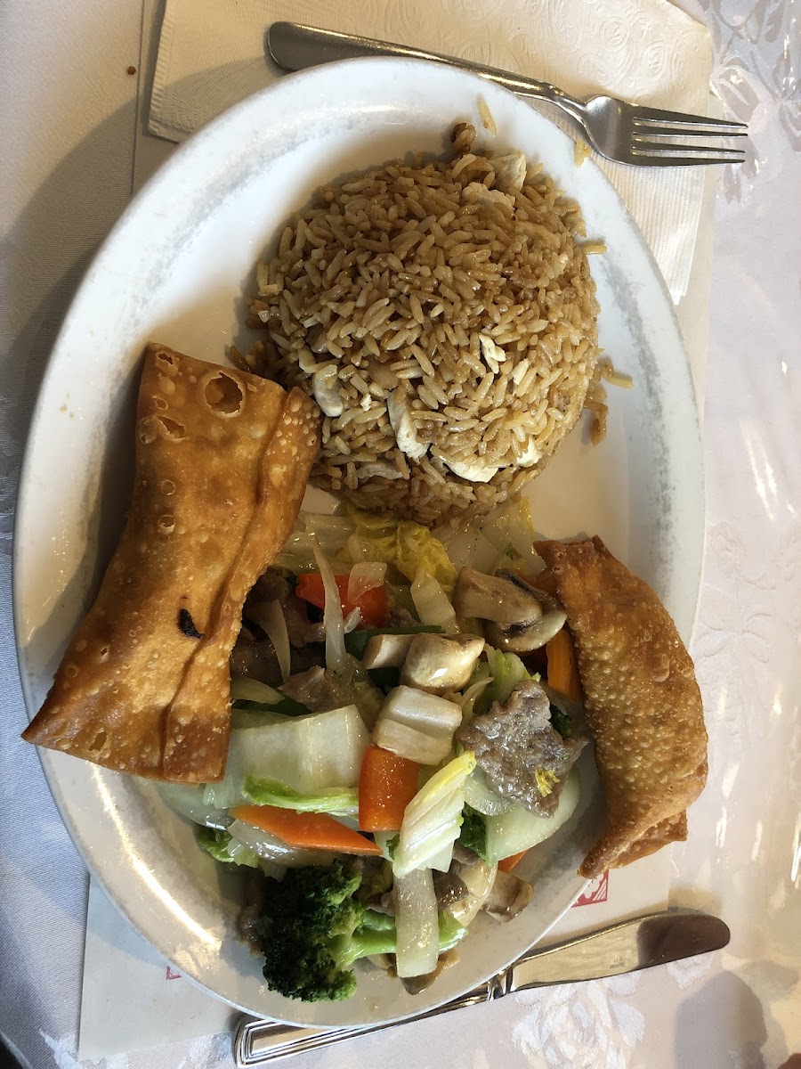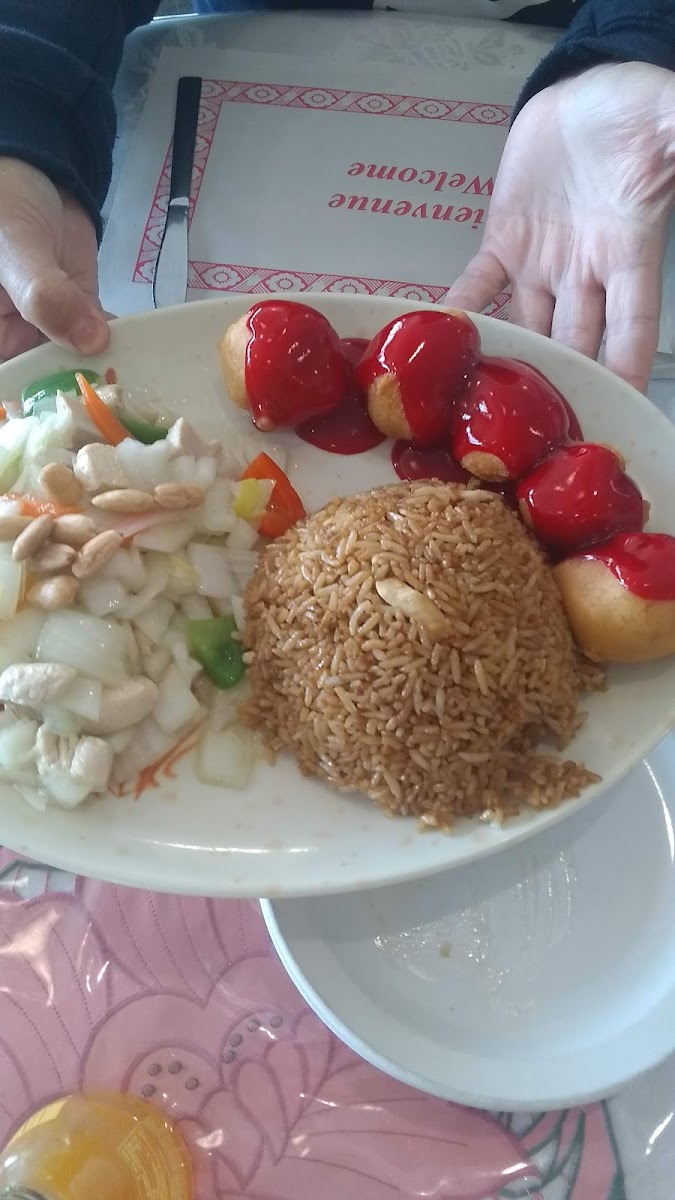 Caroline and I ordered a lunch special each, and added an extra egg roll on top of that. They started us with a lovely Won Ton soup with scallion, followed up with the lunch selection. She had the chicken balls with chicken fried rice, while I ordered the beef and vegetables with extra egg roll. The "Canadian" Chinese food was good, and I was quite happy with the beef and vegetables, and shared it with Caroline. They give you a good sized portion of rice and as the meals cost twelve dollars per selection, we felt like we had great service, and great value. We'd both dine here again. Cheers!